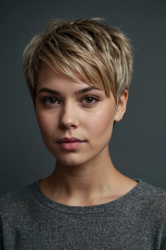 A layered pixie cut creates movement and texture in short hair. The layers help shape your hair while removing extra weight.