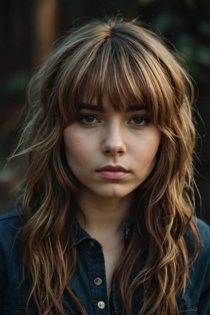 A soft fringe adds a gentle touch to your gypsy shag haircut.