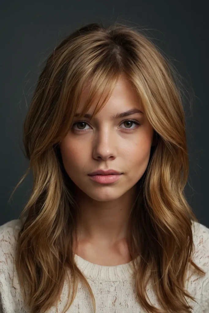 You can style this look with loose waves using a curling iron or overnight braids. The golden undertones work great with warm and neutral skin tones.