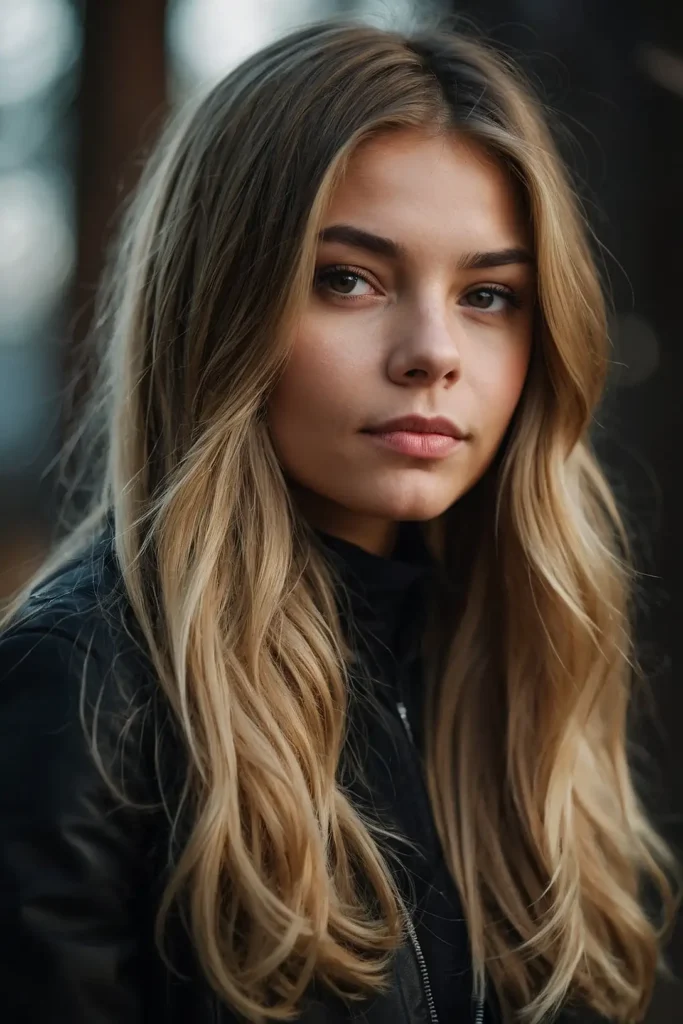 This style blends dark roots with lighter blonde ends to create natural-looking depth. The deep roots fade into lighter blonde tips, making it easy to maintain as your hair grows.