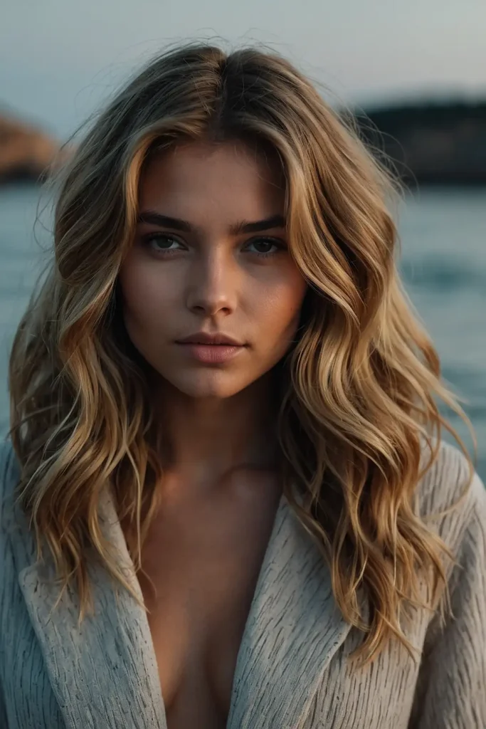 Beach waves give your dark blonde hair a relaxed, effortless look. The gentle waves create movement that shows off the different tones in your color.