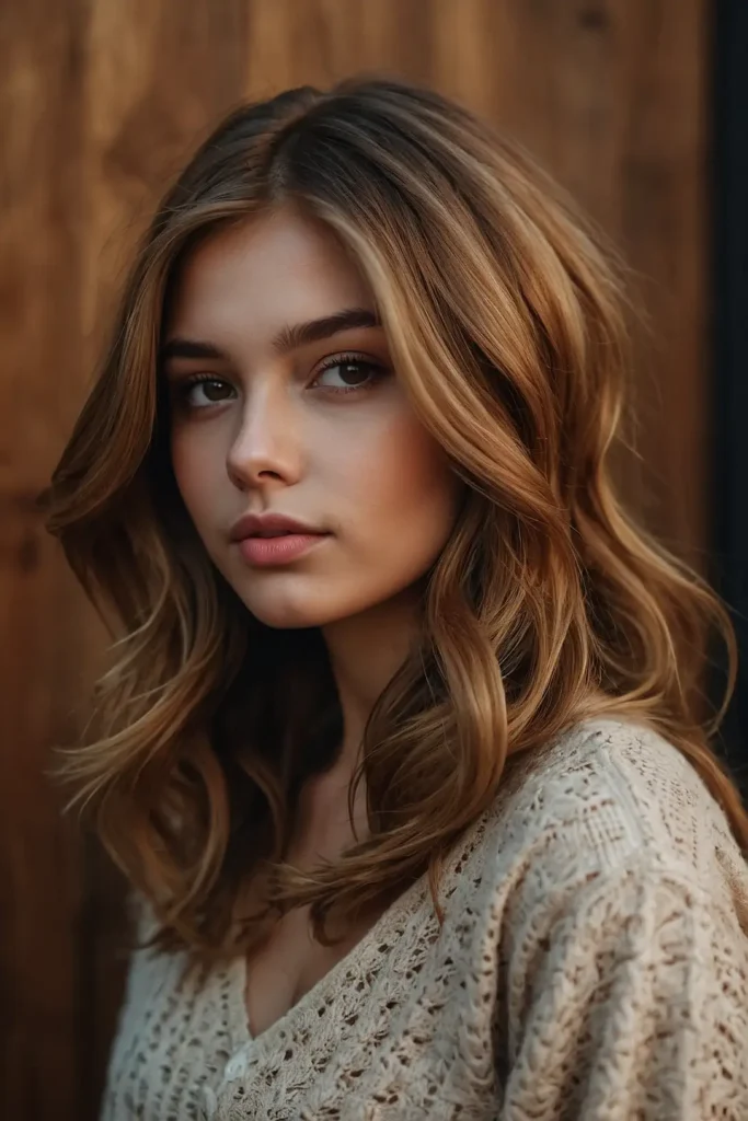 The subtle copper accents work best when placed strategically around your face to brighten your features. You’ll love how this color combination looks both sophisticated and effortless.