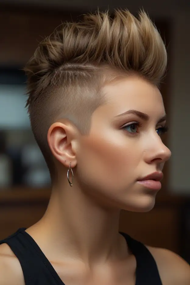A daring mohawk with shaved sides makes a bold fashion statement.