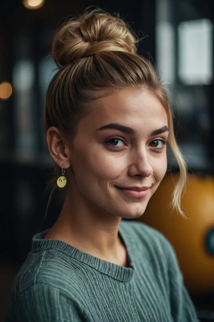 A textured bun adds volume to your thin hair through gentle teasing and loose styling. You can create this look by lightly backcombing sections of your hair before gathering it into a bun.
