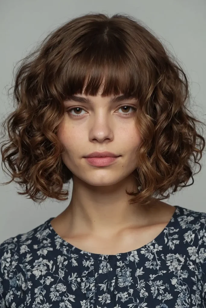 A curly bob that hits your collarbone frames your face perfectly. This versatile cut works great with natural curls and adds bounce to your look.