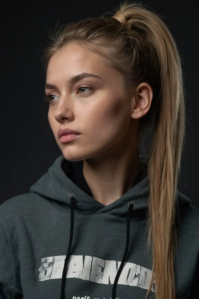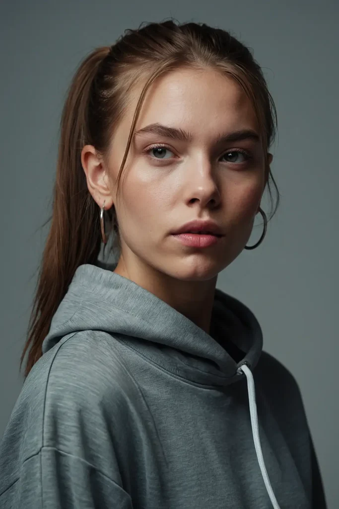 A side sleek ponytail gives your hoodie look a clean and modern touch. Pull your hair to one side, brush it smooth, and secure with a clear elastic band.