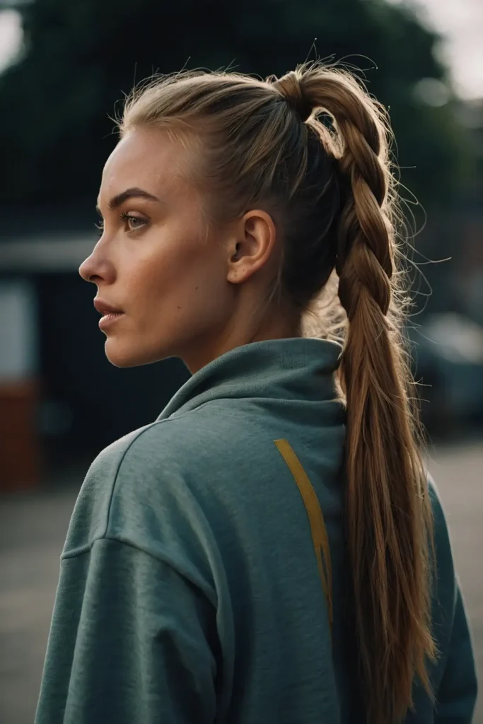 You can wear this style with the braid hanging out the back of your hoodie for a sporty touch.