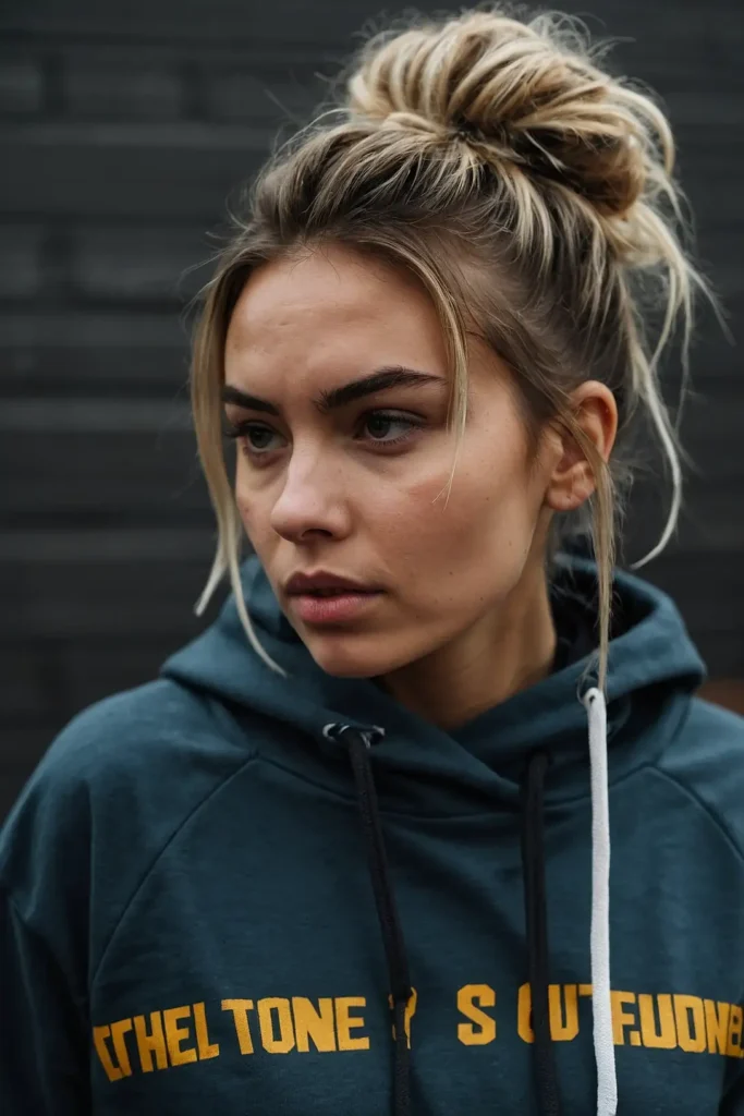 A sleek bun gives you a polished look while wearing your hoodie. Pull your hair back tightly and create a neat bun at the nape of your neck.