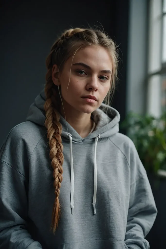 Your French braid pairs perfectly with any hoodie style. Braid your hair from the crown of your head down to create a sleek look that stays neat all day.