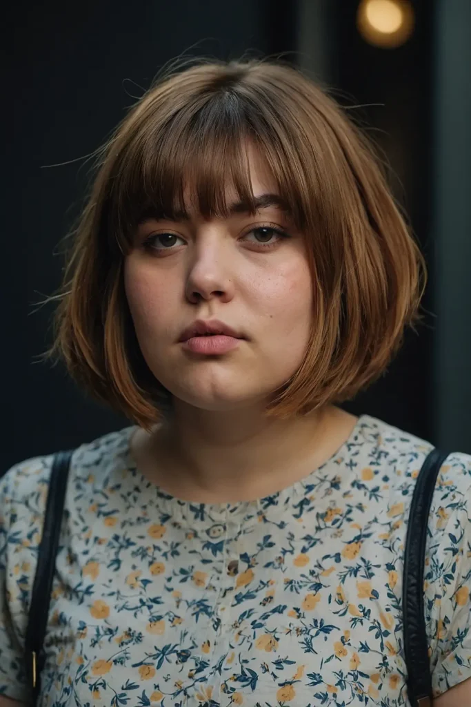 An asymmetrical bob features one side longer than the other, creating a slimming effect on chubby faces. The uneven cut draws attention away from fuller cheeks while adding style.