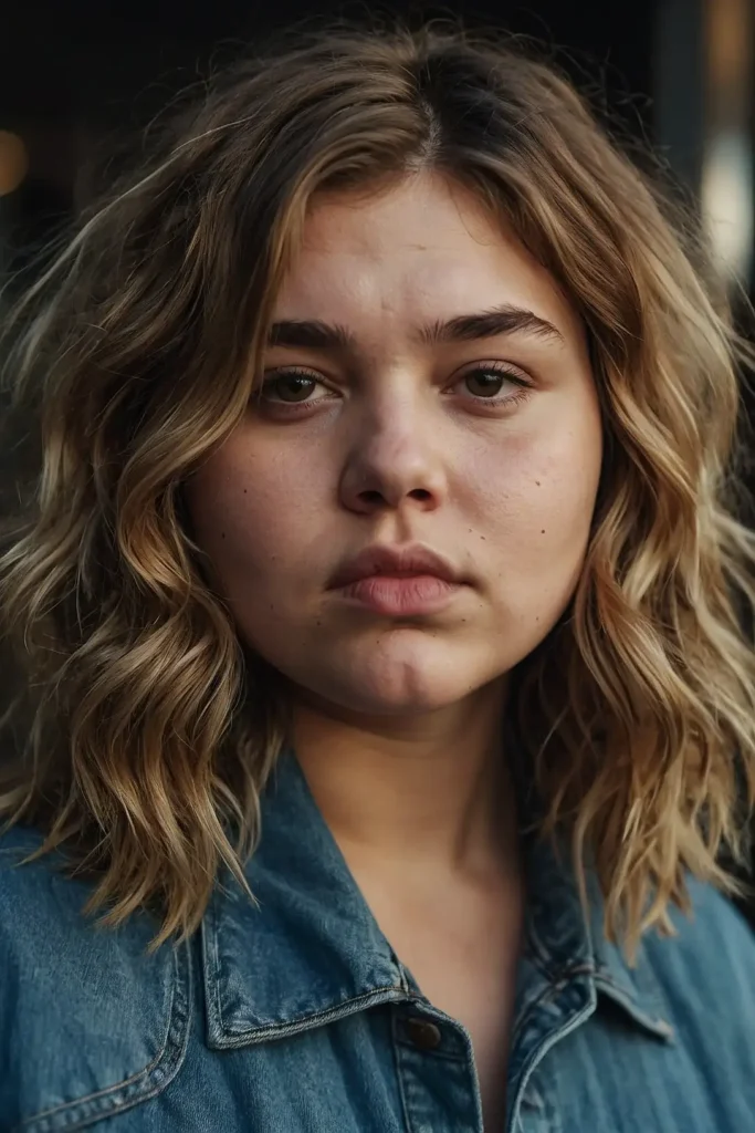 The shaggy lob with waves hits just above your shoulders and frames your face with soft, tousled layers. This cut makes your face appear slimmer while adding movement and texture.