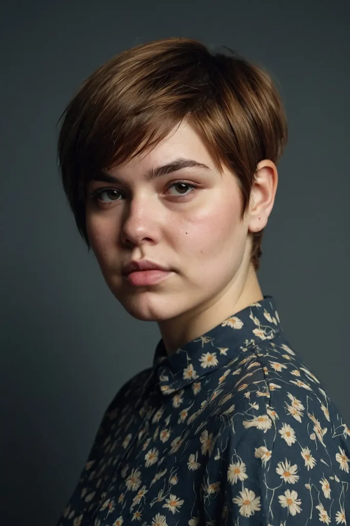 The side-swept pixie cut works great for chubby faces. Your bangs should fall diagonally across your forehead to create a slimming effect.