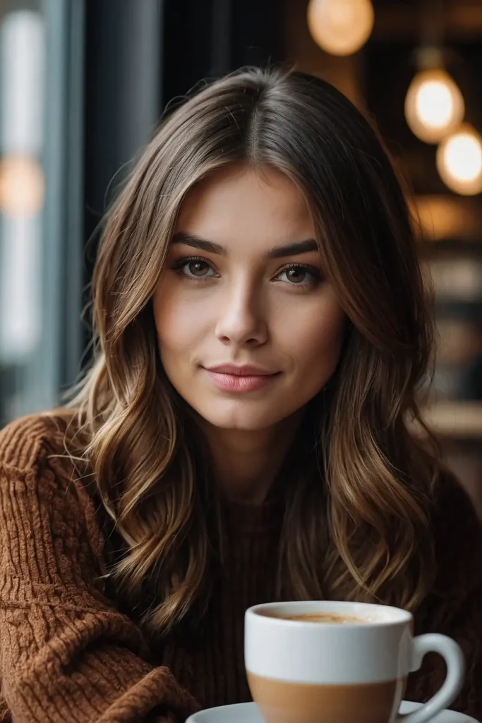Your brown hair gets a gentle update with soft waves and light brown tones. The waves create natural movement while lighter shades add warmth to your look.